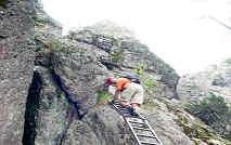 Seguimos subiendo hasta llegar a un punto donde Oscar recordó una vereda que lleva a las escaleras y no fue hasta que encontró dichas escaleras cuando lo seguimos. Cerca