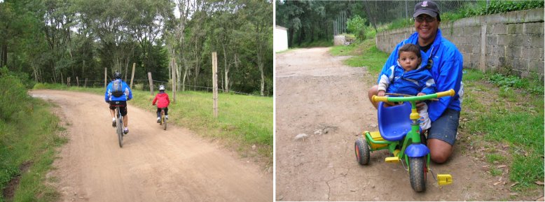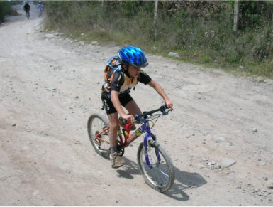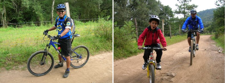 | Escenas como esta hacen comprender a cualquiera lo maravilloso que es el Ciclomontañismo. | Octavio, El integrante mas pequeño de Xinte junto con su papá Mike Alvarado. |