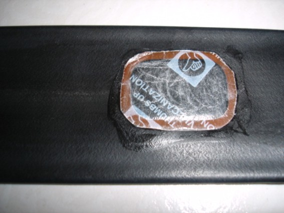 A continuación aplicas pegamento del que viene con los parches en la zona que lijaste previamente es decir una zona 2 o 3 mm mas grande que el tamaño del parche.