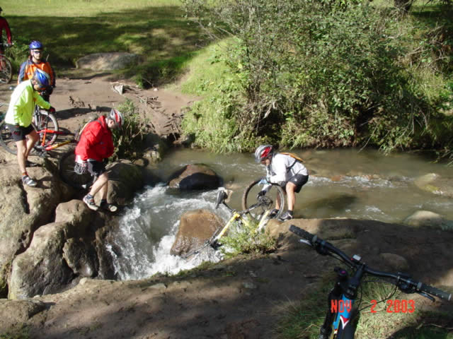 | Por lo crecido del Rio Xinte el cruce en "La Fosa" fue complicado. | En espera de su turno |