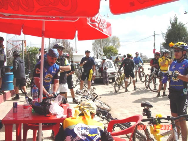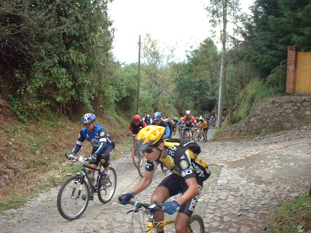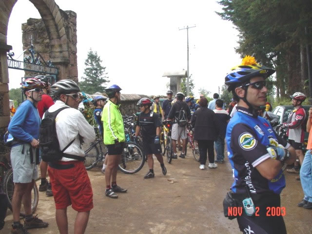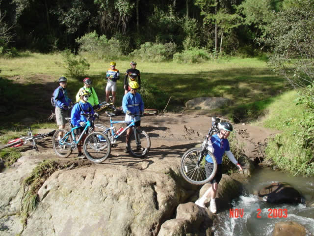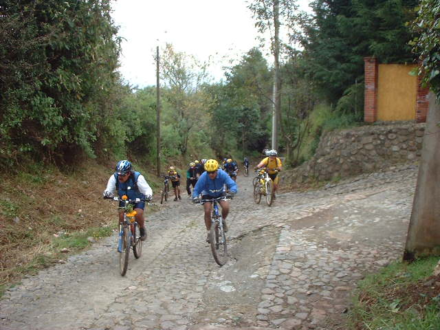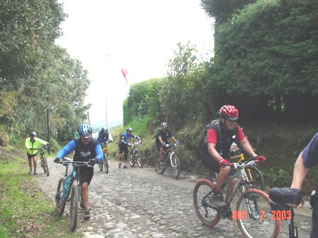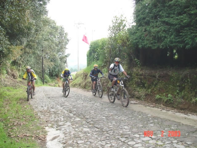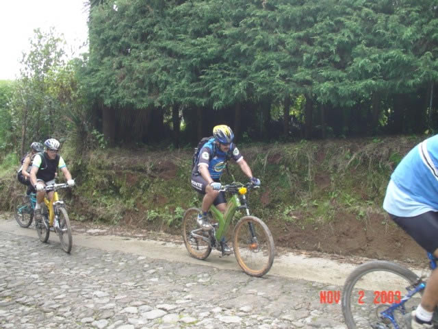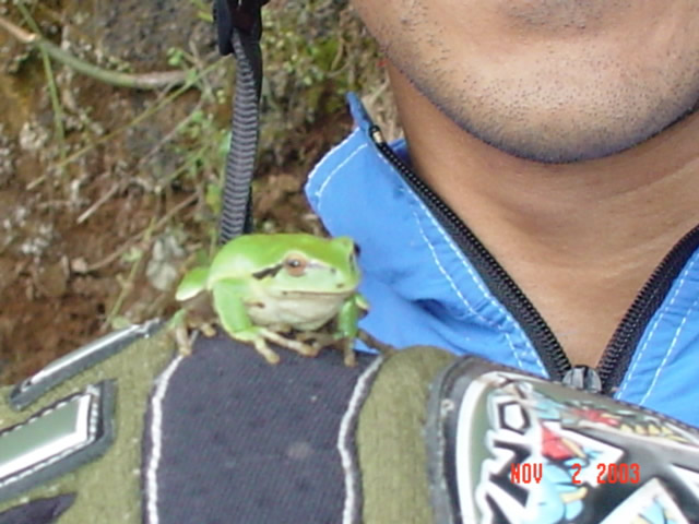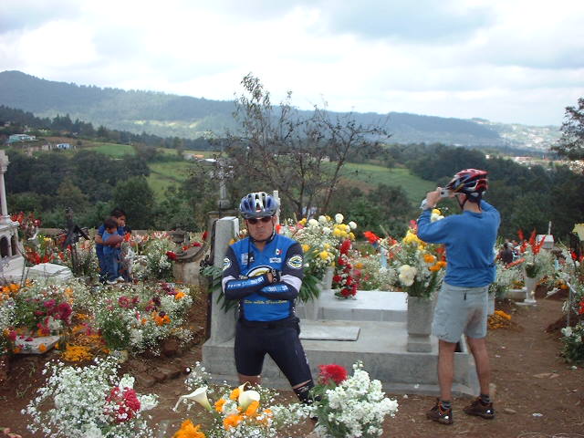 | En el Panteon de San Miguel Tecpan | Una rana se colo entre los ciclomontañistas |