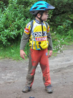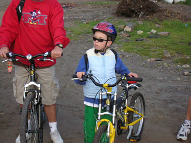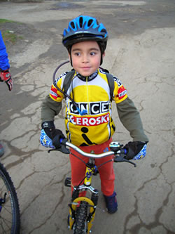 | Patricio, Hijo de Hector Devars listo y perfectamente equipado. | Los mas pequeños eran los mas ansiosos por arrancar |