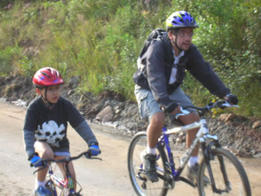 | Mike Alvarardo y su hijo Octavio llegando hasta abajo de Las Eses |