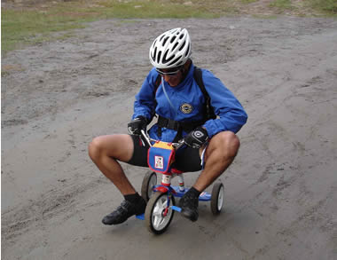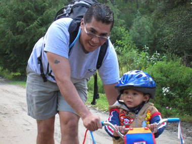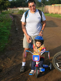 Pancho aprovecho para rodar en el triciclo de Octavio |