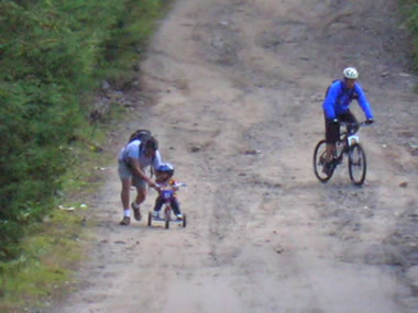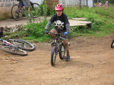 El momento mas emotivo fue cuando Mike Alvarado llego hasta abajo de Las Eses con el pequeño Octavio en su triciclo. |