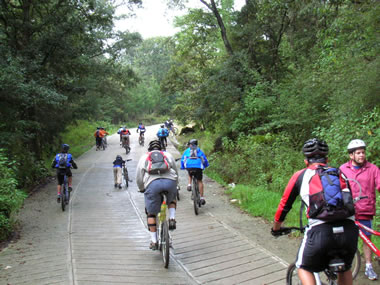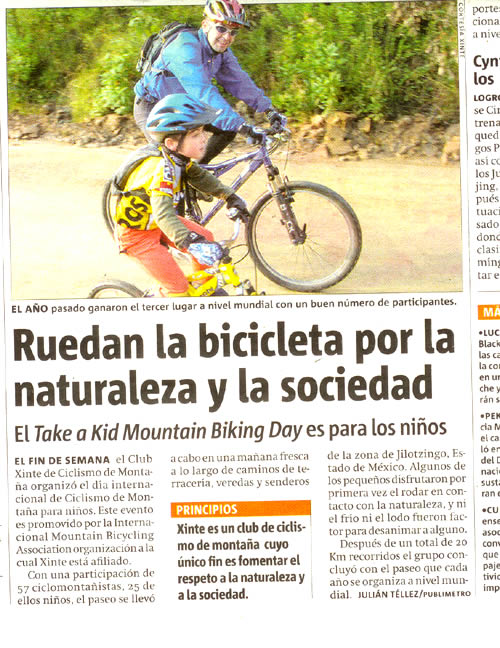 Octubre 8, 2006: Ahora con 60 participantes llevamos a cabo la tercera edición del Take a Kid Mountain Biking Day 2006 de IMBA. Un excelente grupo del cual 25 niños de entre edades de 5 hasta 16 años se dieron cita con sus padres para gozar de la naturaleza. Muchos de ellos por primera vez rodaban en la montaña. Este año la gente del periódico Publimetro nos hizo favor de publicar un articulo en su edición del Martes 10 de Octubre. Gracias a todos. Nos vemos en 2007 !!! |