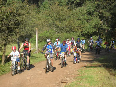 IMBA´s Take a Kid Mountain Biking Day 2007 Octubre 7, 2007: Como ya es una costumbre el primer fin de semana del mes de Octubre de cada año IMBA convoca a todos sus clubes afiliados alrededor del mundo a llevar a cabo el Take a Kid Mountain Biking Day. Club Xinte lo llevo a cabo en la zona de Jilotzingo (Chiluca) con una participación de 17 pequeños y un total de 65 ciclomontañistas que rodaron por caminos del bosque de la zona en un espectacular día soleado. Aquí las fotos de este recorrido. |